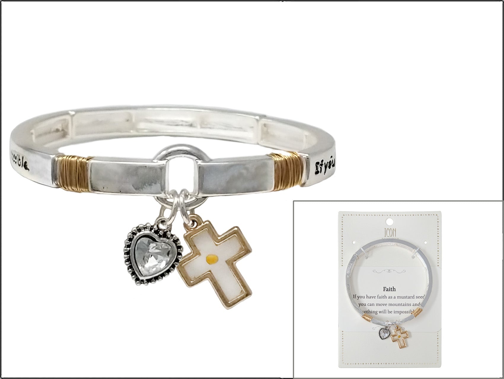 Cross & Heart Charm Bracelet