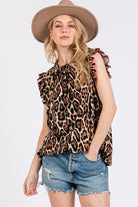 Ruffle Neck Top with Elastic Band, with Flowy Ruffle Sleeves in ribbed knit material.