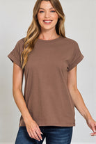 A versatile everyday tee designed with a relaxed silhouette and clean, minimalist finish. Crafted for comfort and easy movement, it features a classic crew neckline, rolled short sleeves, and a flattering drape that works well for layering or standalone styling. Ideal for boutique merchandising, this wardrobe staple transitions seamlessly across seasons and pairs effortlessly with denim, trousers, or skirts for casual, work-from-home, or on-the-go looks.