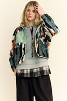 FUZZY MULTI COLOR TEXTURED FLEECE ZIPPER POCKET SNAP BUTTON FRONT JACKET