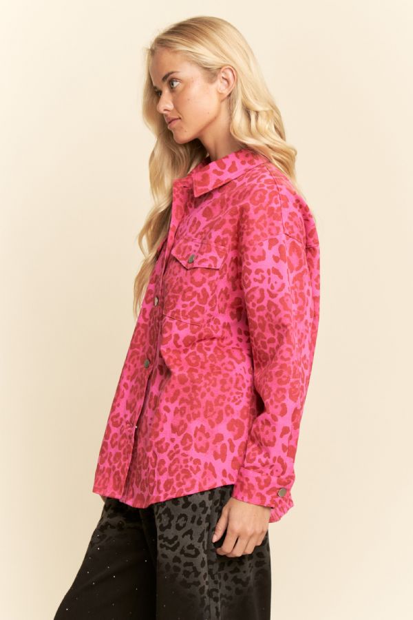 Elevate casual layers with this bold leopard print jacket, crafted in a structured silhouette with snap-button closure and utility pockets. Designed for boutique buyers seeking standout everyday staples, this piece blends playful pattern with refined versatility. Perfect for pairing with denim or trousers, it adds a confident, modern edge to any collection.