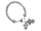 A braided chain bracelet featuring a heart clasp and meaningful charms, including an ornate cross and an inspirational engraved tag, offering a symbolic and stylish accessory for everyday wear.
