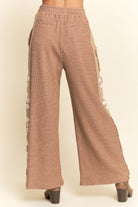 Elevate your boutique with these wide leg knit pants featuring statement floral lace applique panels and textured patch pockets. Designed for comfort and style, the elastic waistband and relaxed silhouette offer effortless wear, while unique lace and knit detailing add boutique-worthy charm. Perfect as a standout piece or paired with the matching top for a complete set that blends cozy ease with refined casualwear.