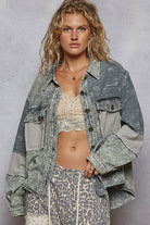 Designed in long sleeve relaxed fit jacket in French terry with animal or floral pattern contrast.