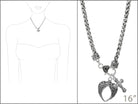 - A bold chain necklace featuring detailed charm accents, including a winged heart and cross. This statement piece combines texture and symbolism, adding a striking touch to both casual and dressed-up looks.