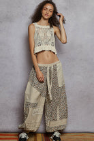 Designed in patchwork relaxed fit jogger pants in printed woven.