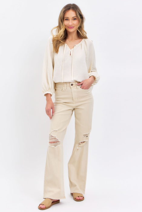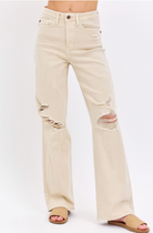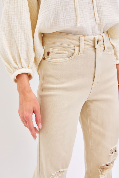 These high-rise denim pants feature a straight-leg silhouette with intentional distressed detailing for a lived-in, modern look. Designed for comfort and everyday wear, they combine durable construction with a relaxed structure that allows easy movement. A versatile staple for casual styling, this pair brings effortless edge and contemporary appeal to any wardrobe.