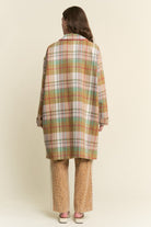 WOMEN'S MULTI COLOR PLAID DOUBLE BUTTON DOWN V NECK FRONT POCKETS COAT