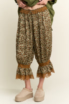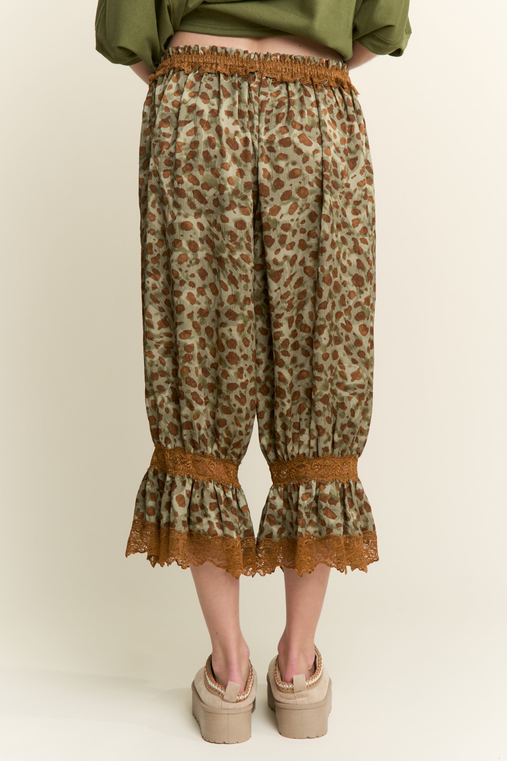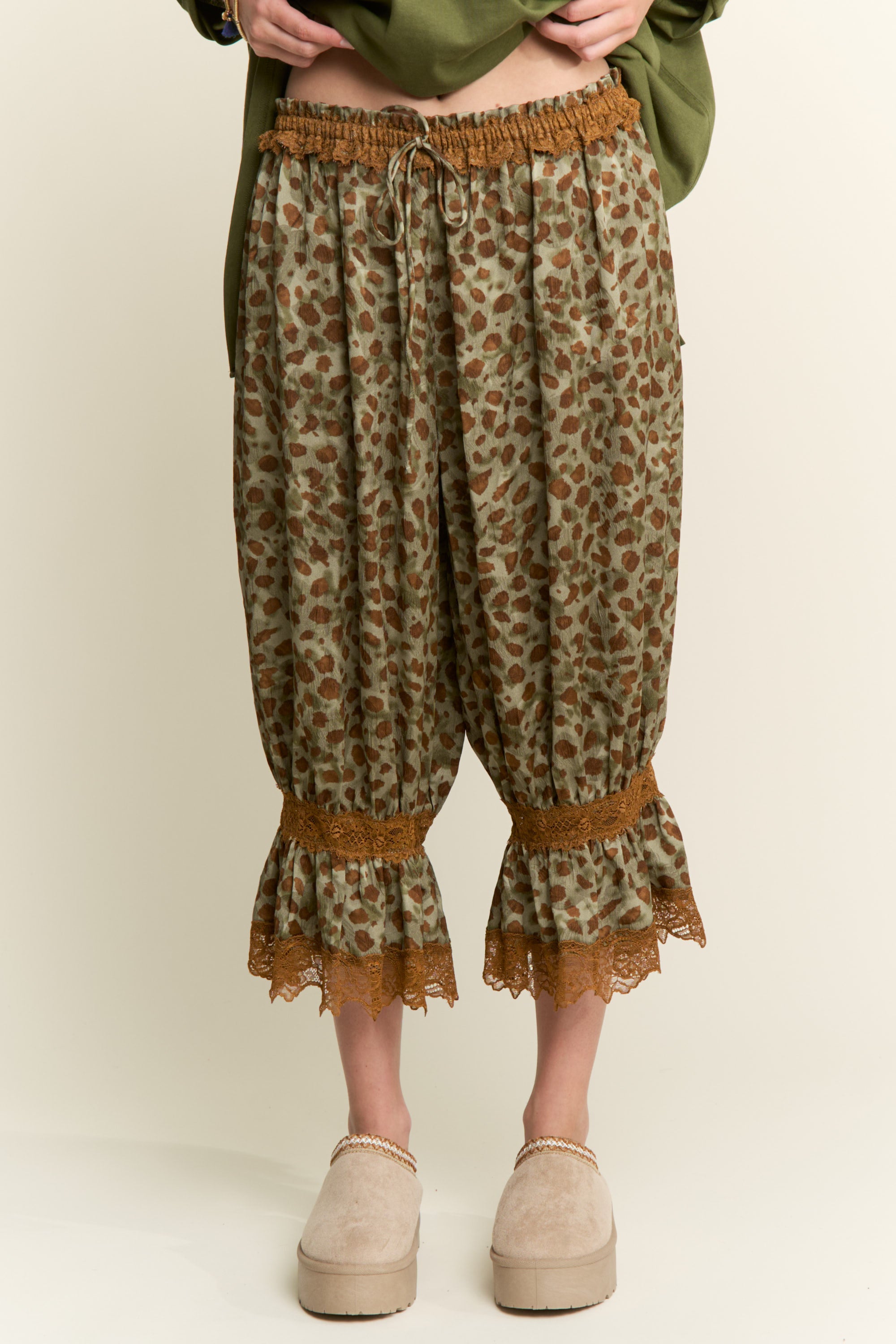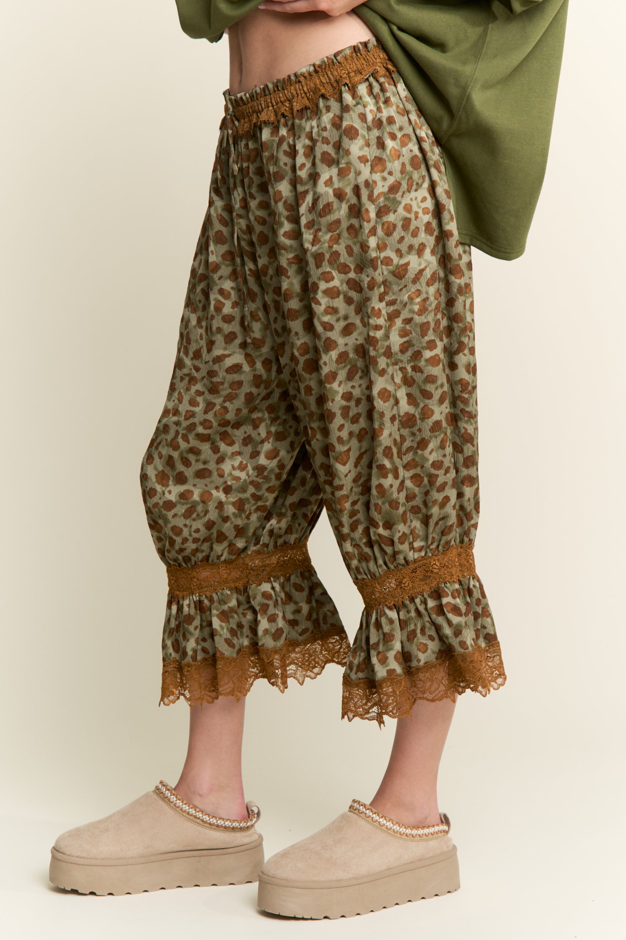 WOMEN'S MULTI PRINT SATIN LACE TRIM DETAIL BOTTOMS. ELASTIC WAIST BAND. CAPRI LENGTH. EXTREMELY COMFORTABLE FIT.