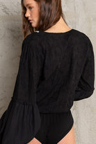Overlay V Neck Ballon Sleeve Bodysuit 16