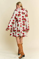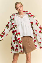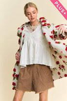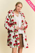PLUS GARDEN FLORAL CHUNKY EMBROIDERED BUTTON FRONT HOODIE COAT JACKET