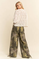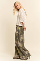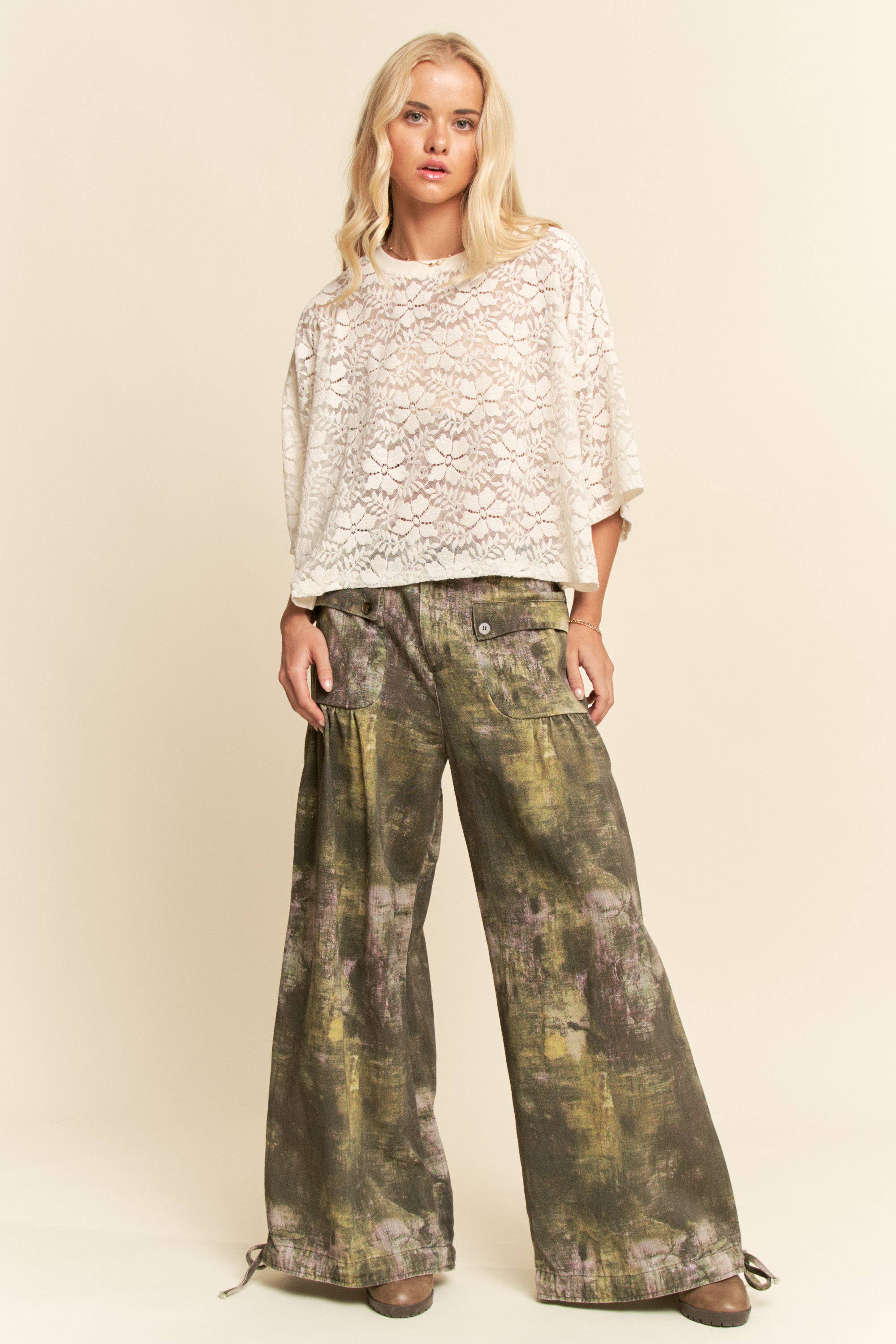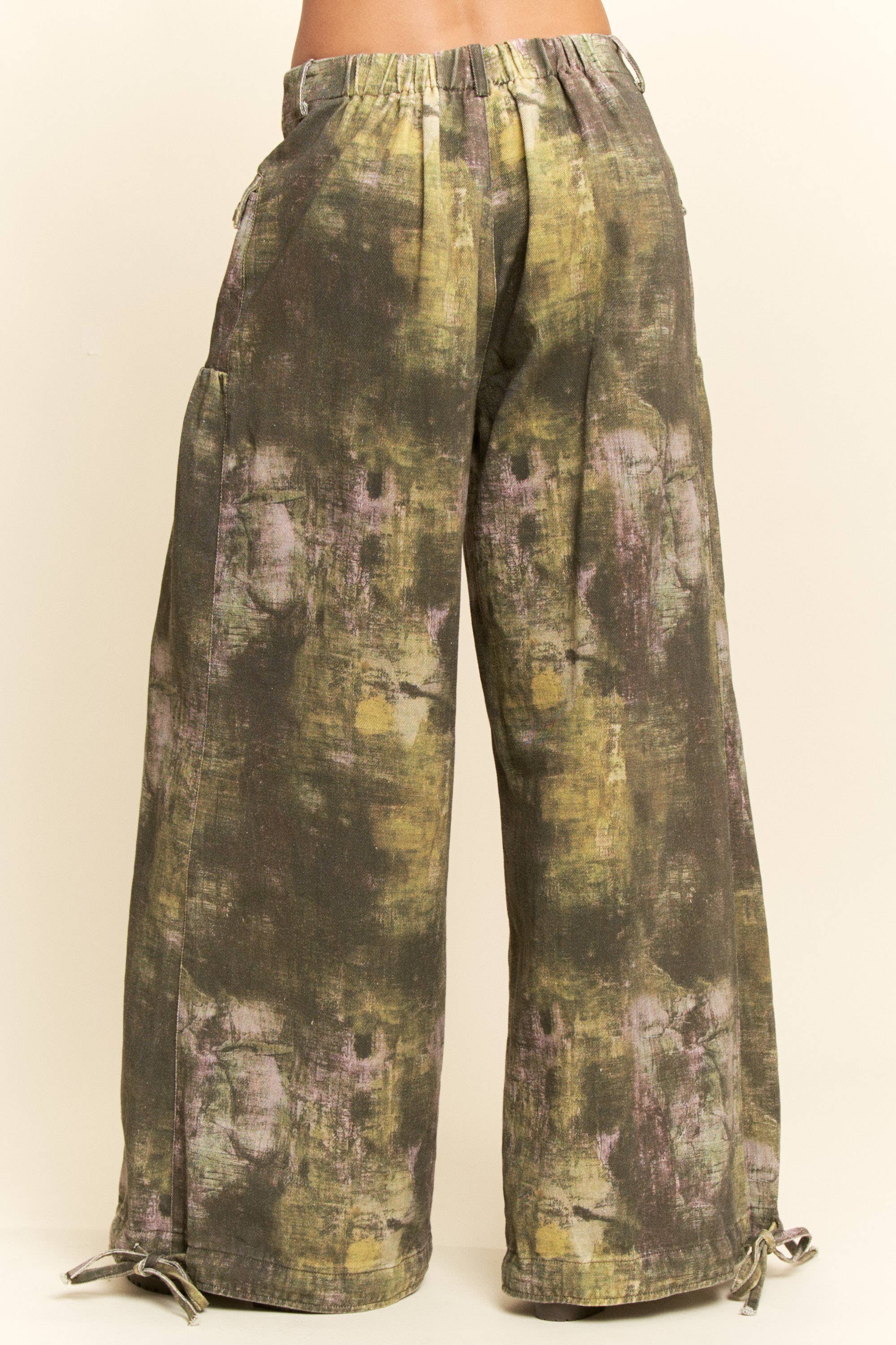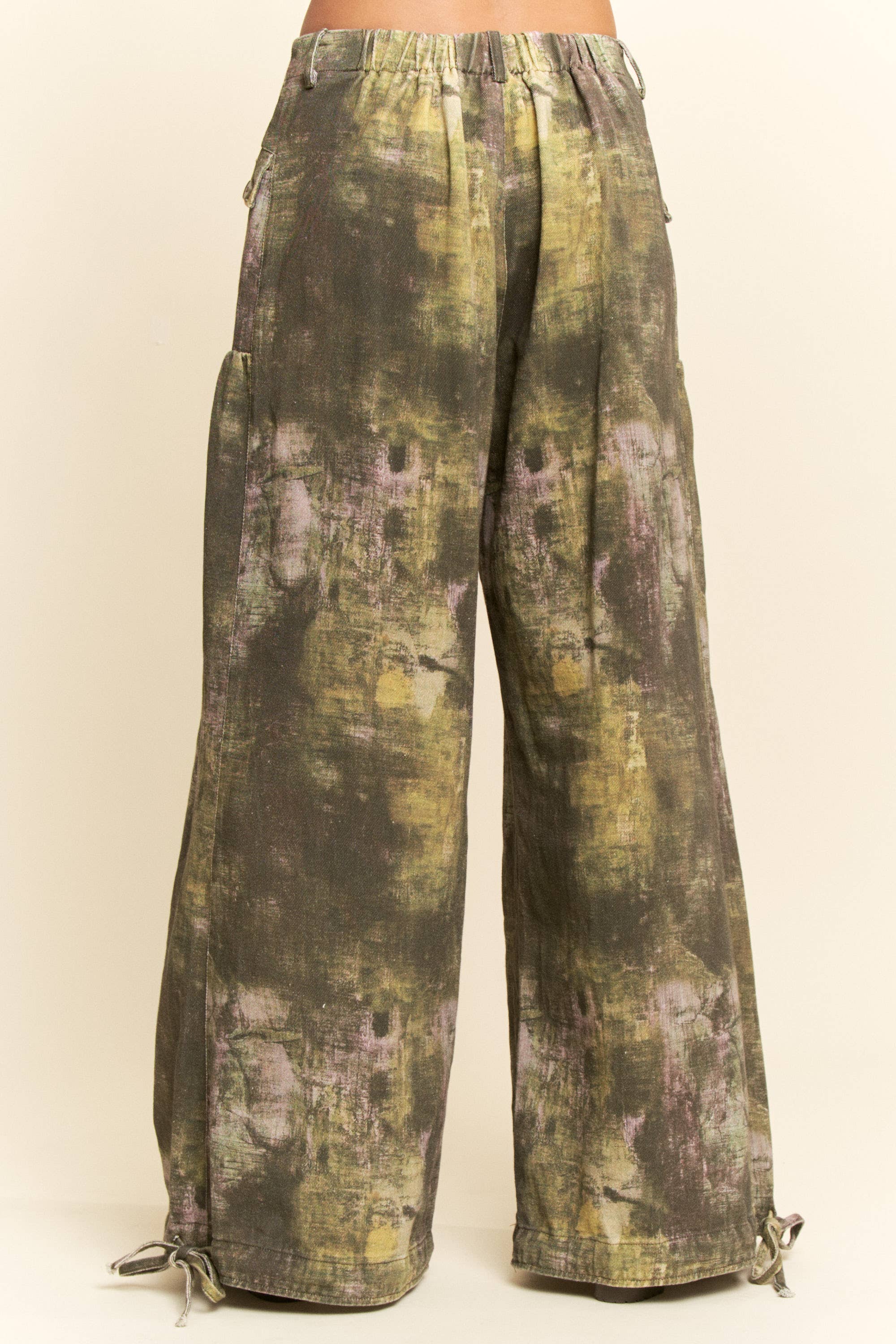 Update your collection with these plus size abstract wash wide-leg cargo pants, designed with a painterly finish in earthy tones for a modern, artistic edge. Featuring flap cargo pockets, adjustable drawstring hems, and a relaxed fit, these versatile pants balance utility with style. Perfect for boutiques seeking standout casualwear that pairs effortlessly with fitted tops, knits, or cropped jackets.