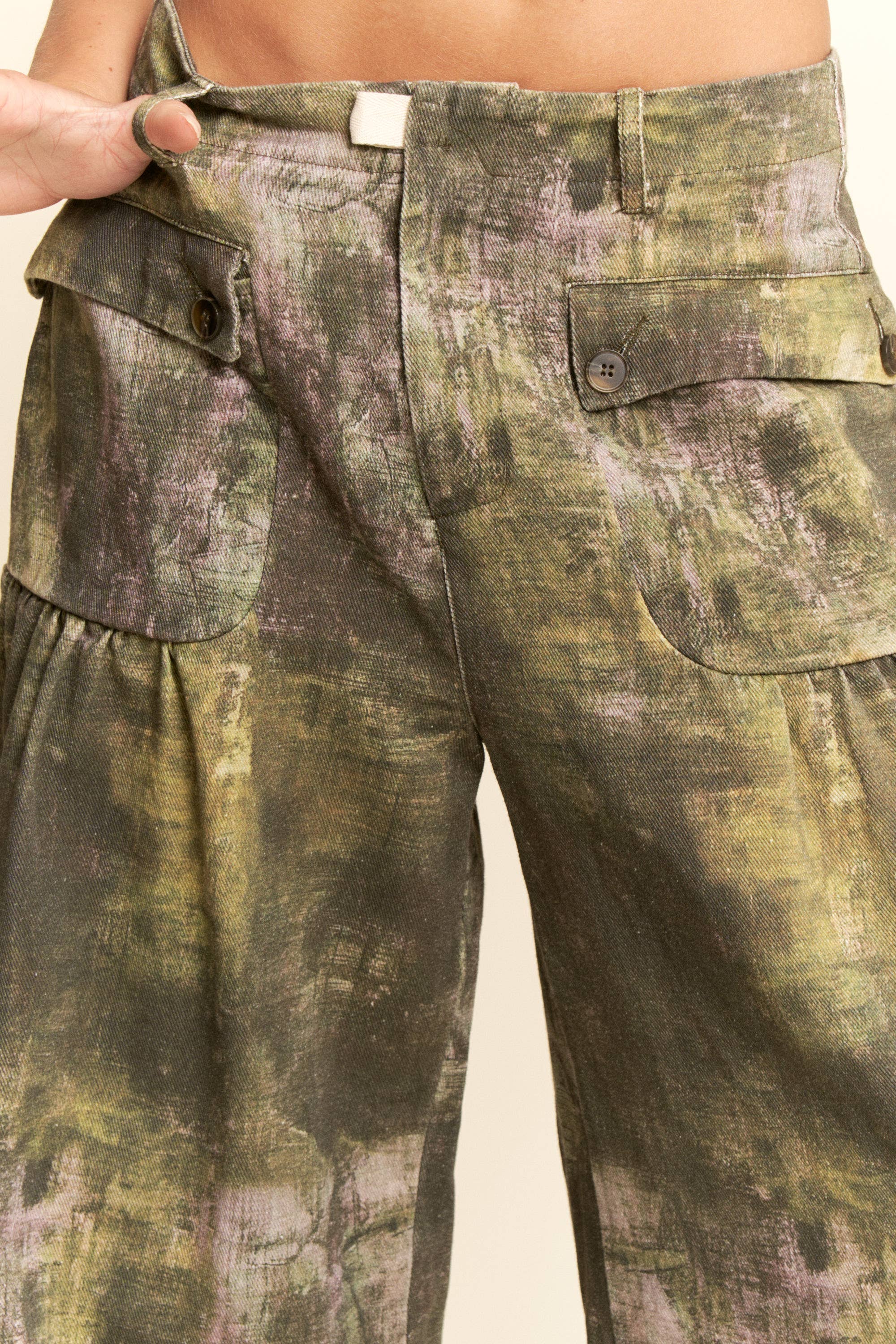 TIE-DYED PRINTED MID-HIGH WAIST PANTS 34