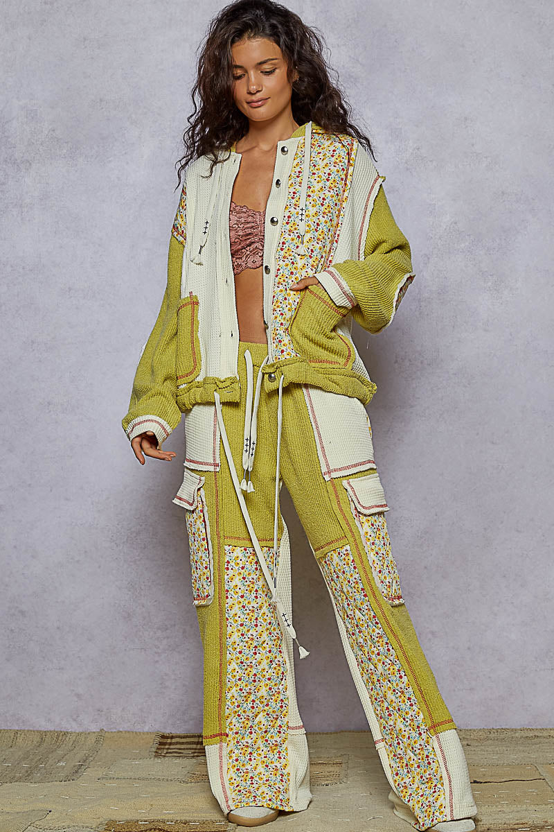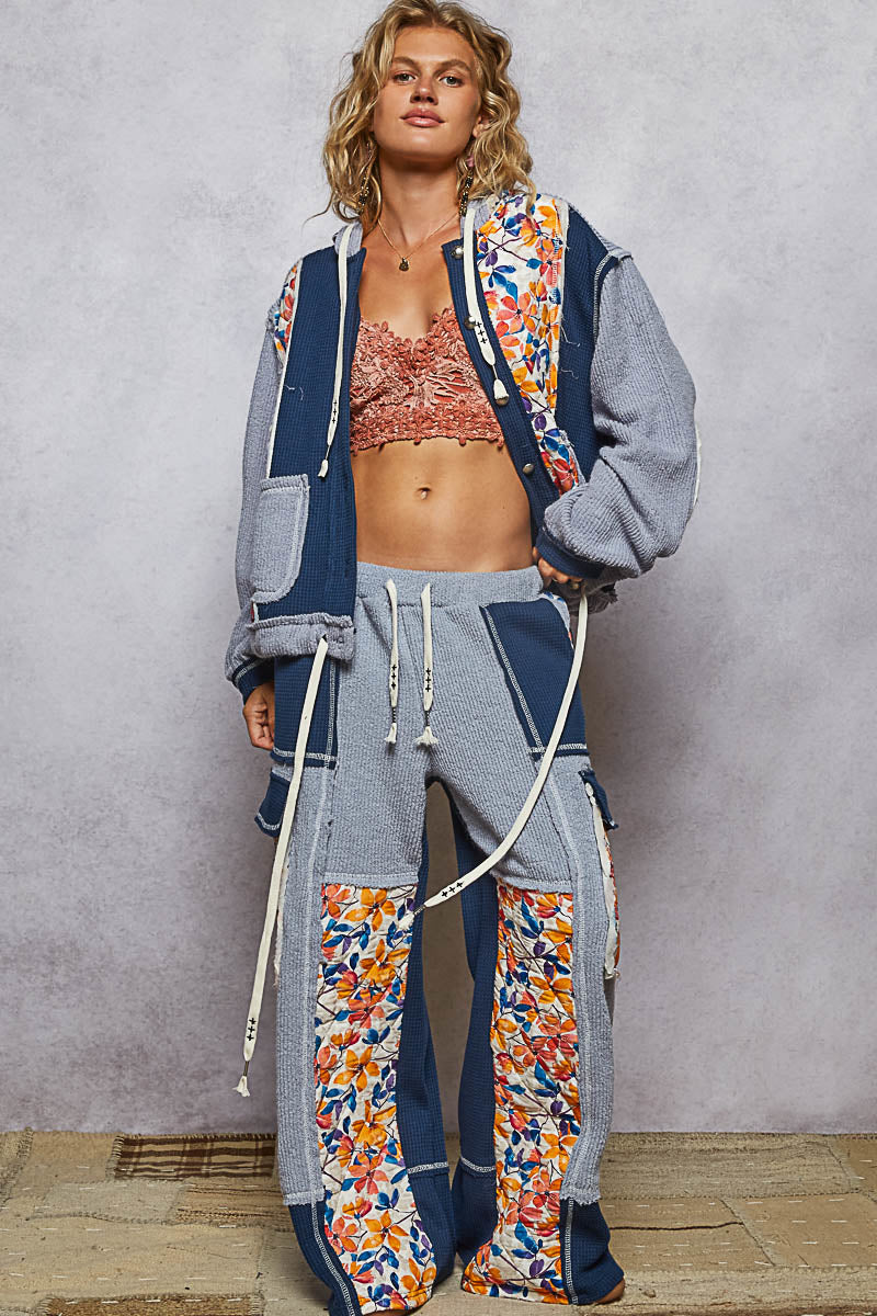 Designed in pants, relaxed fit in thermal with quilted detail pointed floral pattern.
